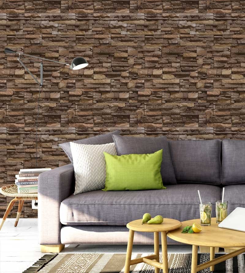 Papel de parede estilo pedras canjiquinhas em tons variados de marrom e bege. Clássico com recortes únicos, possui uma cor que combina com qualquer ambiente e pode ser implementado em ambientes claros.