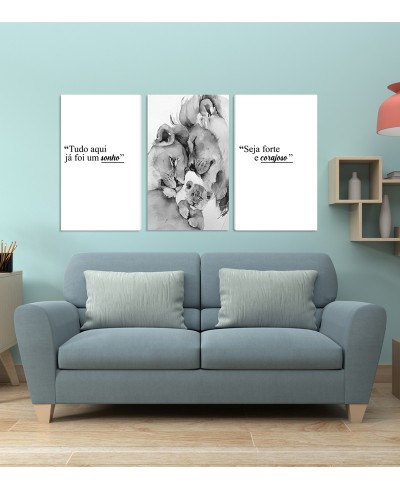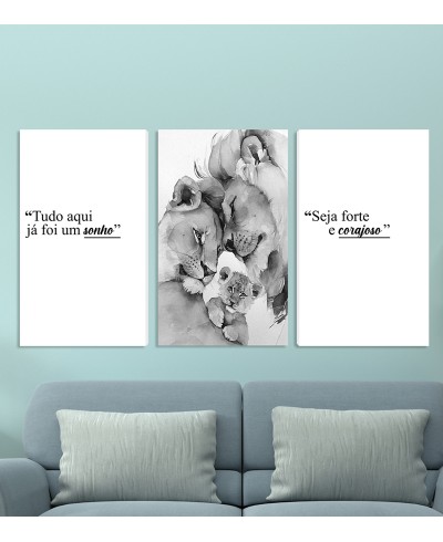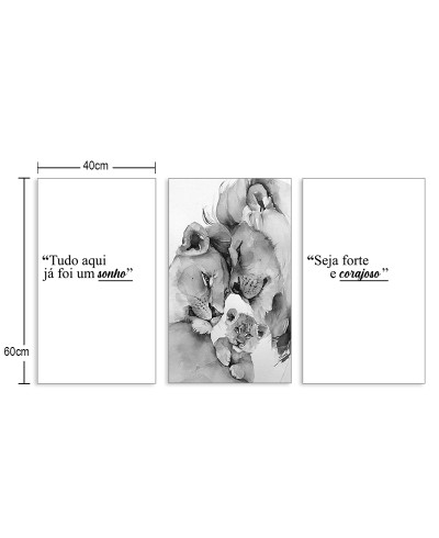 Kit com 3 lindas telas no tema família leão, tudo aqui já foi um sonho, seja forte e corajoso! Aproveite nossas lindas telas.