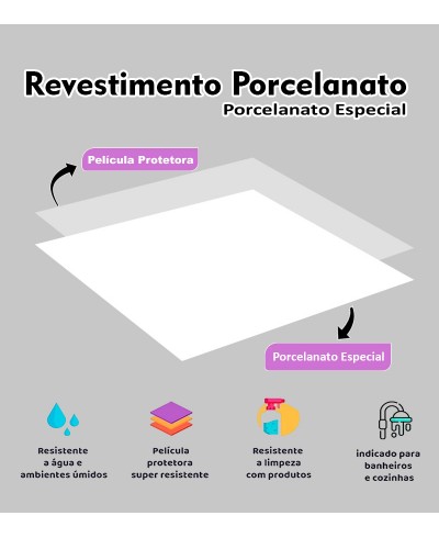 Esse produto cobre imperfeições, pode ser aplicado por cima de outros pisos sem a necessidade de quebra quebra, é muito rápido aplicar nosso porcelanato autocolante, ótimo custo benefício.