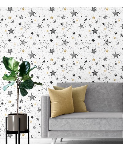 Papel de parede teen estrelas em tons de preto, branco e beje. Ideal para salas, quartos infantil e arêa de lazer; produzido com material de alta qualidade.