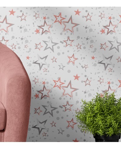 Papel de parede teen estrelas em tons de preto, branco e salmão. Ideal para salas, quartos infantil e arêa de lazer; produzido com material de alta qualidade.