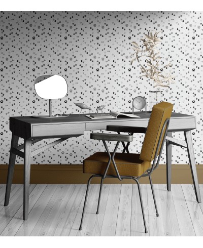 Papel de Parede Temático Patas em fundo branco e Patinhas em Tons Preto e Cinza
