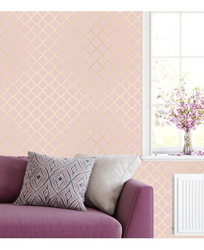 Papel de Parede Rosê Tons Amarelo Arabesco.